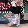Japanese Korea Holographic Pleated Skirts 2022 Women PU Solid Harajuku Casual Laser Hight Waist Mini Short Skirt Women Rainbow