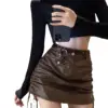 Spring Autumn Drawstring Ruffle High Waist Skirt Women A- line Leather Skirt Woman Skirts skirts 2022 korean fashion clothing