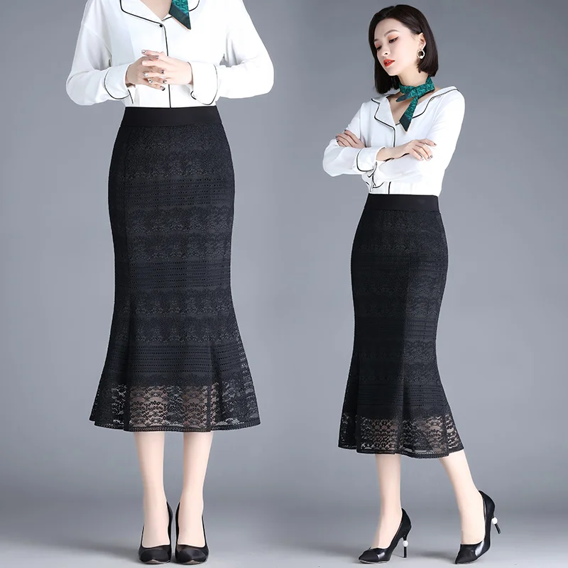 Women Lace Warp Hip Trumpet Skirt New Spring Summer Lace Mermaid Skirt Fairy Temperament Fishtail Skirt Office Lady Skirt