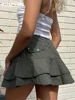 IAMSURE Drawstring Ruffles A-Line Skirt Preppy Style Casual Basic Mid-Waisted Mini Skirts Women 2021 Fashion Streetwear Ladies