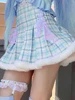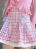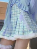 HEYounGIRL Kawaii Lolita Pleated Mini Skirt Lace Bandage Hight Waist Cute Girls Furry A Line Skirt Plaid Print Street Outfits