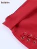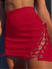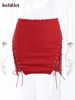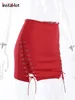 InstaHot Women Lace Up Mini Skirts Hollow Out High Waist Autumn Body Sexy Elegant Fashion Office Lady Club Prom Female Red Wear