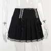 Rosetic Gothic Pleated Skirt Women Retro Darkness Goth Fashion Black Lolita Lace Up Casual Skirts Sexy Spring Summer New 2022