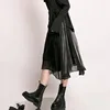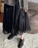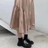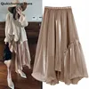 Spring Summer Satin Skirt Women Korean Fashion Elastic High Waist A-Line Long Midi Asymmetrical Organza Ruffle Kawaii Skirts