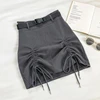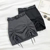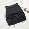 Summer Women A-line Skirt Korean Empire Solid Office Lady Cute Above Knee A-Line High Waist Mini Skirts Drawstring Belt