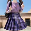 Women Purple Black Goth Pleated Plaid Skirt Glir High Waist Mini Sexy Skirts Japanese School Harajuku Cosplay Anime Sailor Suit