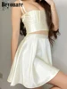 Beyouare Satin Skirt Women Kawaii Ruched High Waist Soft Mini Skirts 2022 Summer Korean Casual Fashion Sexy Office Lady Bottoms