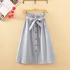 Summer Autumn Skirts Womens 2021 Midi Knee Length Korean Elegant Button High Waist Skirt Female Pleated School Skirt