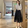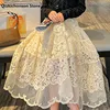 Spring Summer Vestido Floral Embroidery Lace Skirt Women Korean Fashion Cute Fairy High Waist A-Line Midi Long Skirts Ladies