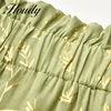 Army Green Dots Floral Print Pleated Midi Skirt Women Elastic High Waist Side Pockets Skirts Summer 2022 Elegant Female Bottom