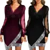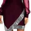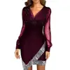 2021 Women Dress Elegant Spring Autumn Solid Color Sequins Dress Fashion V-neck Bodycon Party Dress Sexy Office Lady Slim