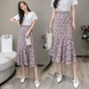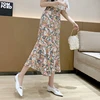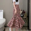 Wisher&Tong Women's Mermaid Skirt Hight Waist Long Floral Skirts Elegant Korean Fashion Chiffon Midi Skirt 2022 Spring Summer