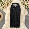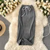 Casual Women Midi Base Skirt 2022 New Korean Fashion Elegant Solid Elastic Waist Lace-up Long Skirt All-match Streetwear Skirts