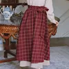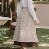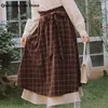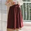 Qiukichonson 2022 Spring Summer Women Cotton Midi Long Skirt Teen Girls Preppy Style Cute Bowknot High Waist A-Line Plaid Skirts