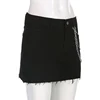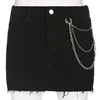 Auyiufar Black Chain Frayed Fairy Grunge Mini Skirt Y2k Urban Streetwear 90s Fashion Slim Bodycon Jeans Skirts Women Basic Cloth