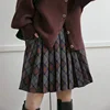 HOUZHOU Vintage Plaid Skirt Autumn 2021 Women Temperament High Waist A-line Pleated Skirt Casual Japanese Style Preppy Style