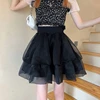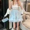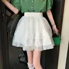 HOUZHOU Kawaii Tulle Skirt Tutu Women Autumn 2021 Korean Fashion Fairycore High Waist Black A-line Mini Skirts for Girls Casaul