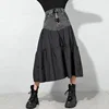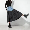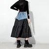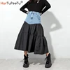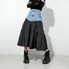 2022 Autumn Spring Lady Long Vestidos High Waist Denim Patchwork Colour Block Streetwear Women Pleated Skirts Mid Calf
