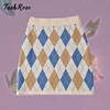 FASHROSE Argyle Plaid Knitting Y2K Mini Skirts Slim Skinny Soft Girl Style Korean Clothing 90s Aesthetic Women Skirt 2000s Urban