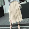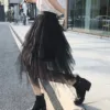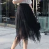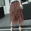 New Tulle Skirt Women Soild Color High Elastic Hight Waist Mesh Tutu Skirts Irregular Long Pleated Skirt Female Midi Skirts