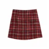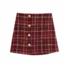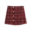 2022NEW Women Autumn Sprint Fashion Single Breasted Mini Skirt Female Stylish High Waist Woolen Plaid Red Skirts Chic Suits
