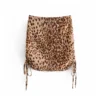 2022NEW Women Vintage Leopard Print High Waist Spring Mini Skirts Chic Lady Fashion Side Pleated Drawstring Animal Print Skrit