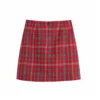 2022NEW Autumn Fashion High Waist Za Women Thick Mini Skirts Chic Lady Casual Back Zipper Plaid Red Suits A-Line Skirt