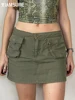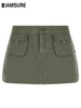 IAMSURE Solid Pockets Cargo Skirts With Shorts Women 2021 Fashion Sexy Slim Low Waisted Mini Skirts Summer Ladies Streetwear