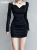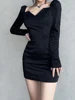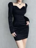 IAMSURE Basic Solid Boducon Dress Sexy Slim Square Collar Long Puff Sleeve Mini Dresses For Women 2021 Elegant Fashion Ladies