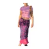 2022NEW Women Floral Print Pink Skirt Sweat High Waist Short Skirts Y2K Midi Skirt Womens Double Layer Chiffon Clothes 90s