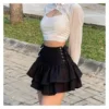 2022NEW Retro solid color high waist sexy hollow summer black short skirt ruffled a-line woman skirts extreme sexy mini micro