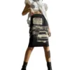 Women Spring Summer Casual Skirt, High Waist Retro Car Letter Printed Slim Fit Straight Mid Skirt
