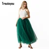 Treutoyeu Maxi Long Pleated Tulle Skirt Korean Fashion White Black Pink High Waist Skirts For Women 5 Layers 100cm