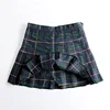 Paris Girl Green Plaid Summer Women Skirt Side Button High Waist Stitching Student Pleated Skirts Female Cute Sweet Mini Skirt