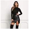 Women PU Leather Mini Skirt Office Lady Sexy Solid Black Split Skirts High Waist Casual Fashion Party Club Bodycon Leather Skirt