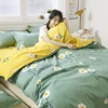 4 Piece Set Brushed Cotton Flower Colorful Bedding Student Home Quilt Cover Frosted Queen Comforter Sets Bed Sheets