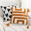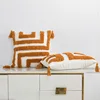 New Cotton Linen Tufted Cushion Cover Black White Parachute Embroidery Pillowcase 45x45cm Brown Tassel Pillow Covers Decorative
