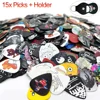 15pcs Classic Guitar Picks Plectrum 1Pick Holder Clip Key Chain Leather 0.46/0.71/0.81/0.96/0.12mm Premium Quality Celluloid