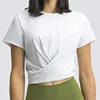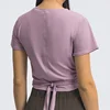 Nepoagym SUNLIGHT Women Waist Cross Wrapping Brushed Workout Crop Shirts Short Sleeve Sports Tops Back Tie Fitness Yoga Tees