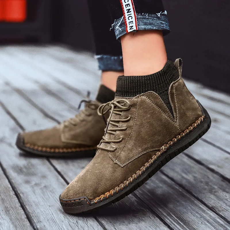 Fall/winter New Men Shoes, Casual Shoes, Warm Men Boots, High-top Hand-sewn Boots, Luxury Footwear, Mouth Boots