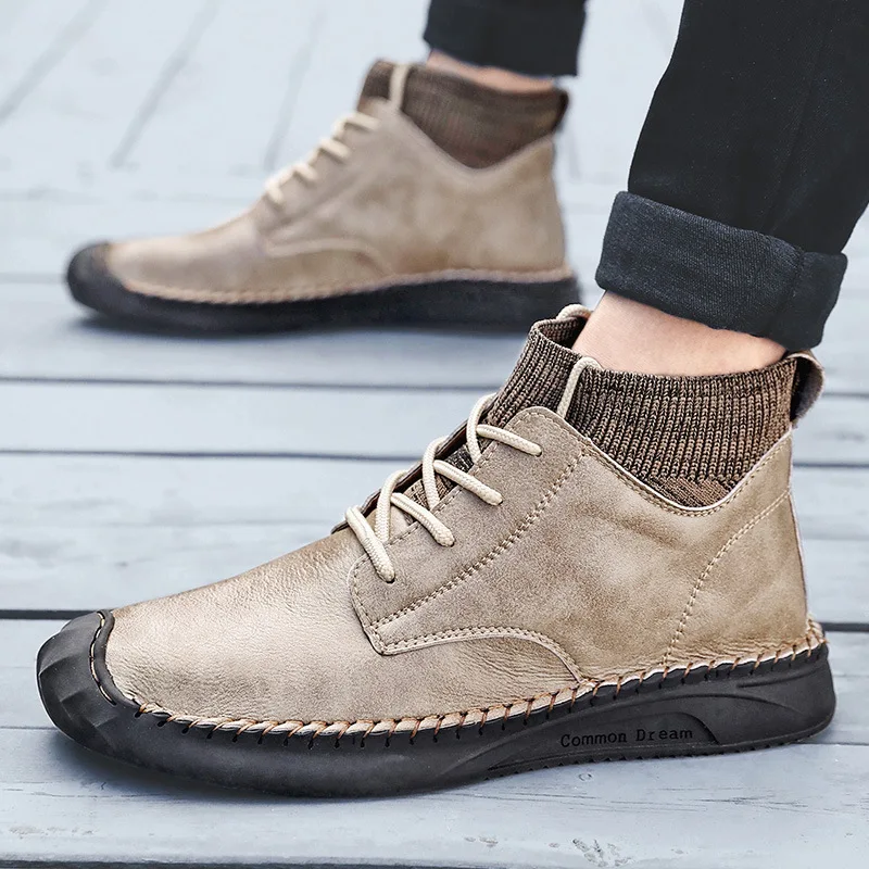Men Shoes 2021 New British Men Casual Shoes High-top Stitching Martin Boots Fashion Large Size Leather Shoes Men Comfort