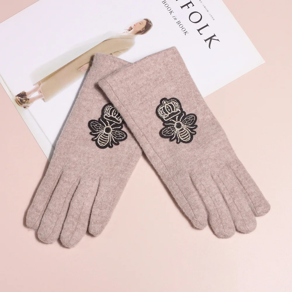 Guantes Winter Gloves Cashmere Warm Women Mittens Beading Flower Touch Screen Rhinestone Butterfly Insect Decor Outdoor