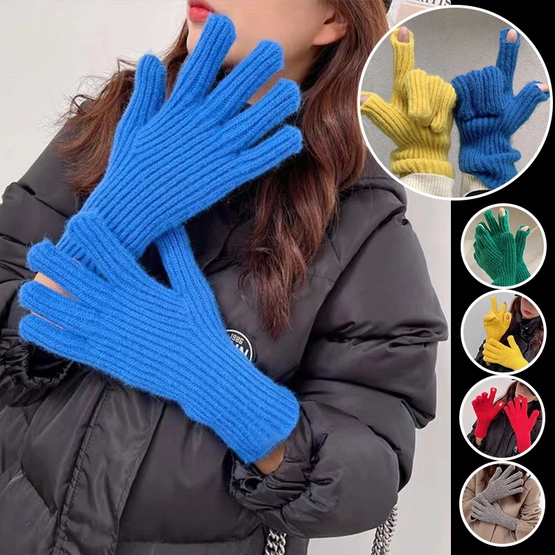 1 Pairs Cashmere Winter Gloves Touch Screen Finger Knitted Gloves Knitting Cashmere Keep Warm Mittens