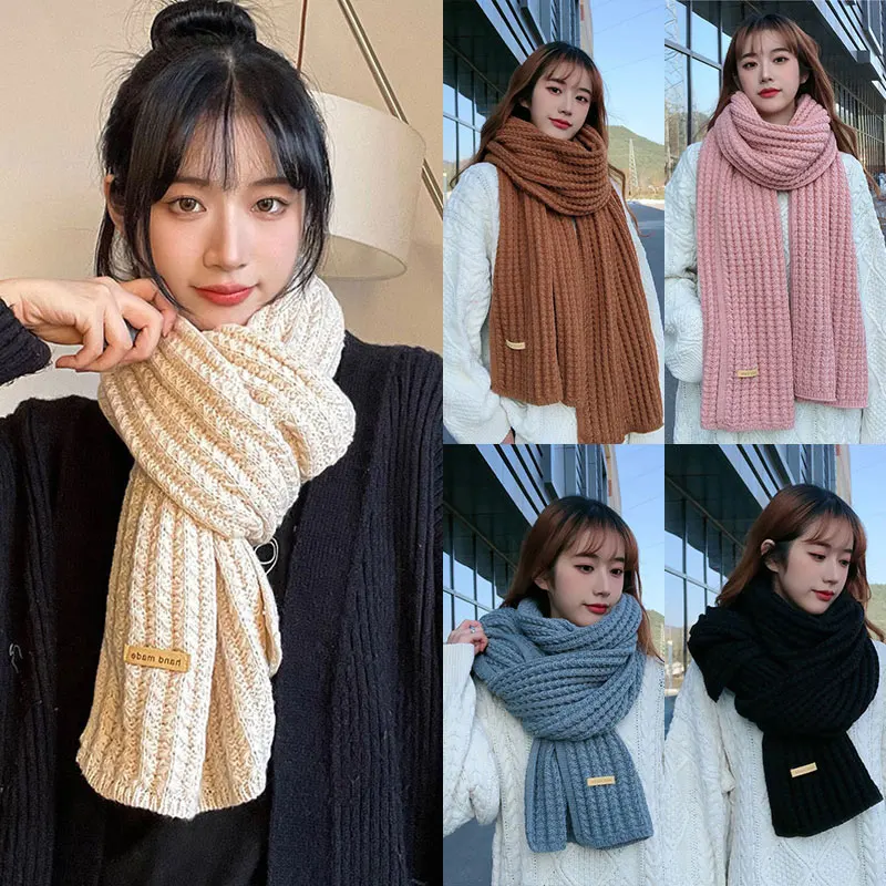 Women's Scarf Winter Korean Version of The New Autumn and Winter Knitted Wool Scarf Simple Couple Thick Crochet Soft Shawl Wrap