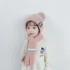 One Piece Hat for Children in Winter with Fluffy Ball Knitted Hat Scarf One-piece Set for Travel to Keep Warm