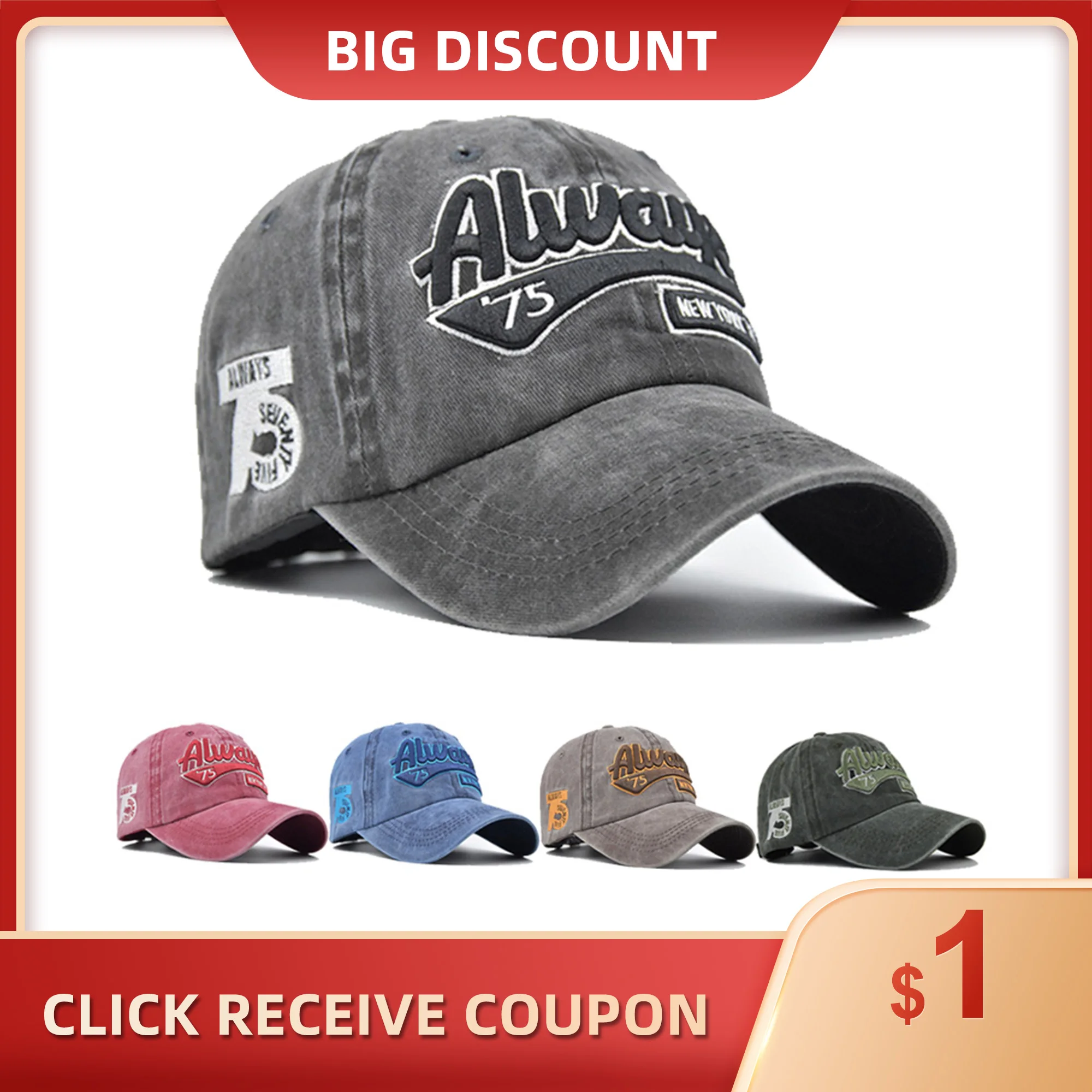 Retro Washed Cotton Embroidery Baseball Caps Men Women Fashion Outdoor Sports Hip Hop Hats Unisex Snapback Dad Trucker Sun Hat