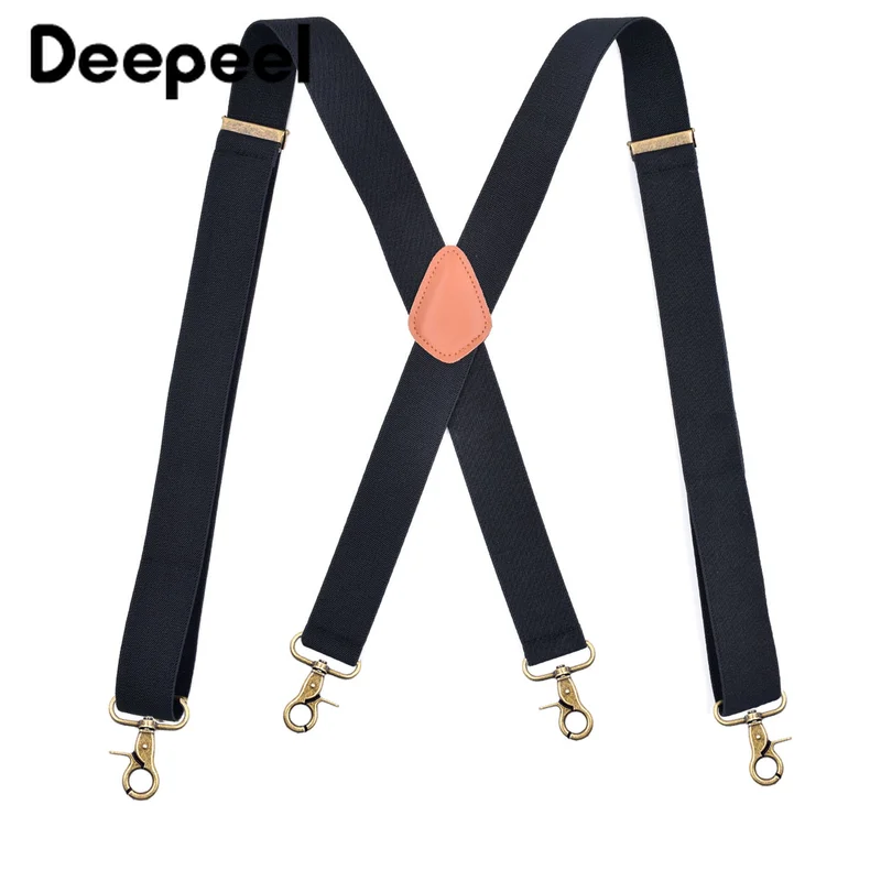 Deepeel 1pc 3.5X120cm Men 4 Clip Buckles Suspenders Adjustable X-shaped Bronze Clasp Hook Male Jockstrap Pants Decor Strap SP026