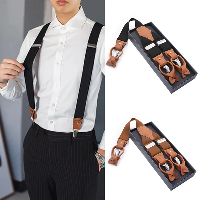1pc 3.5*125cm Fashion Elastic Men's 6 Clips Suspenders X-Back Strap Braces Casual Sling Male Jockstrap Business Work Suspender