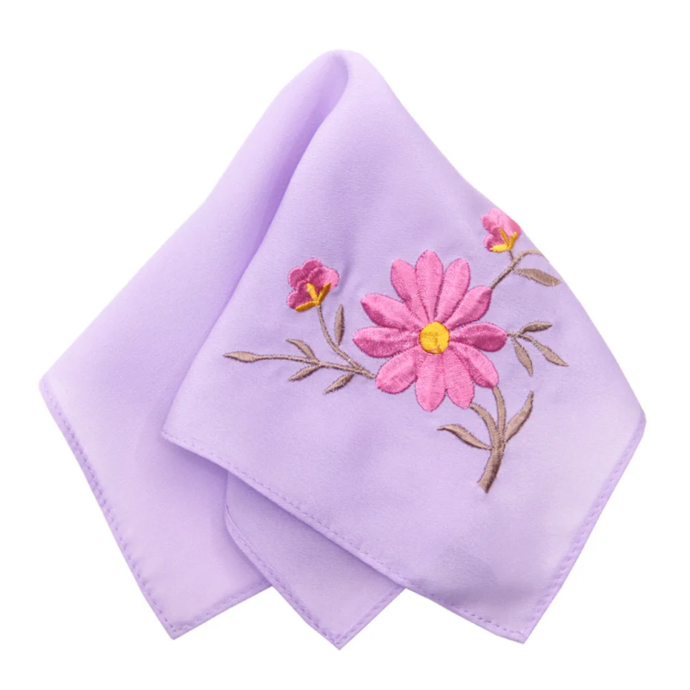 2Pcs Women Hankies Embroidered Flower Hanky Floral Assorted Ladies Girl Handkerchief Fabrics Accessories Purple