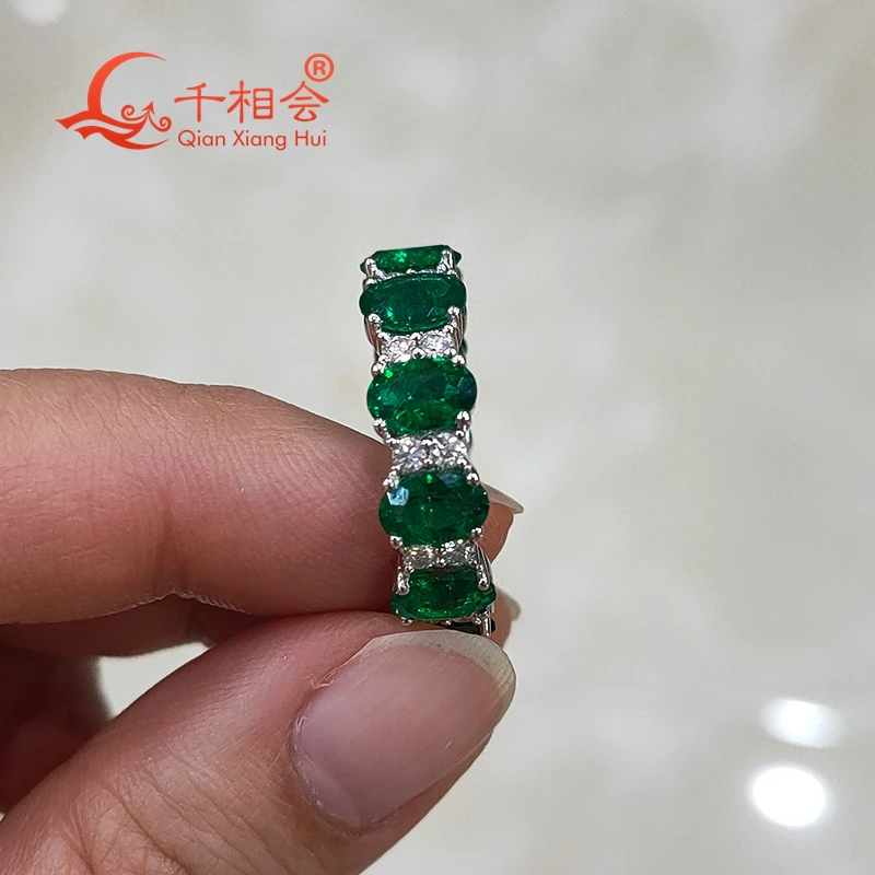 925 silver dark green color 4*6mm oval shape Created Hydrothermal Muzo Emerald with melee moissanite Eternity Band jewelry